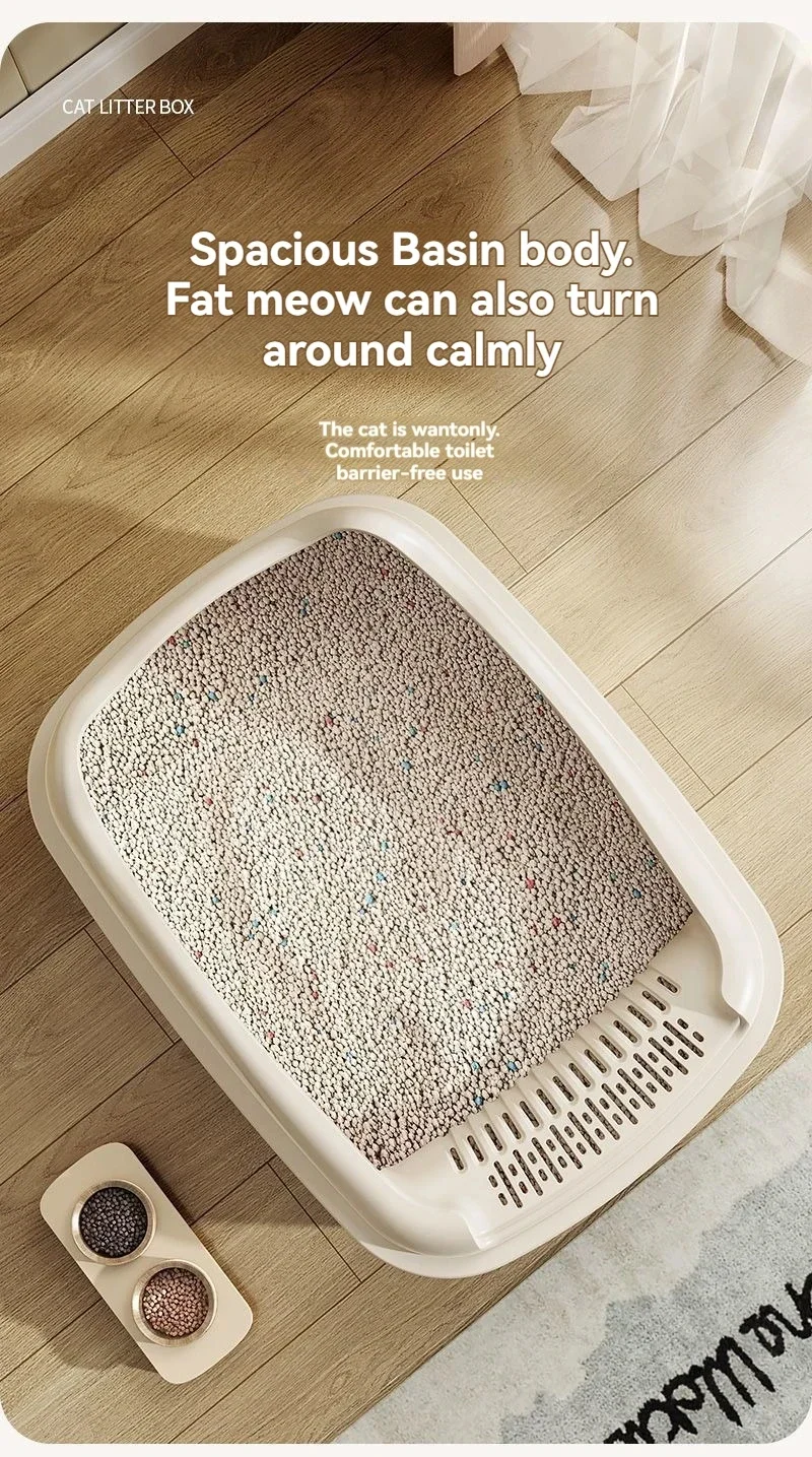 1.Easy Cleaning: This high-sided cat toilet is designed to prevent litter spillage and keep your floor clean. It has smooth inner walls that are easy to wipe and a simple structure that is easy to assemble and disassemble.